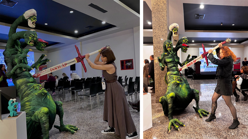1947 tarihli “Mizah” dergisi karikatüründen esinlenen eserin heykeltıraşı Murat Katfar ile heykeli sergileyen Asil Efe Işın, “halkı kin ve düşmanlığa sevk etmekten” 6 Aralık Cumartesi günü tutuklandı.